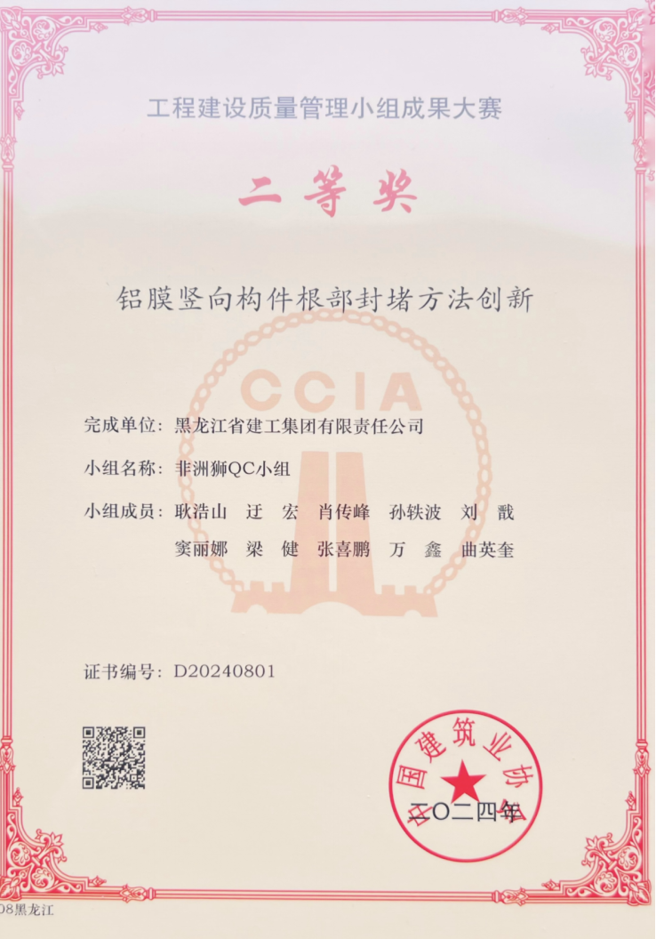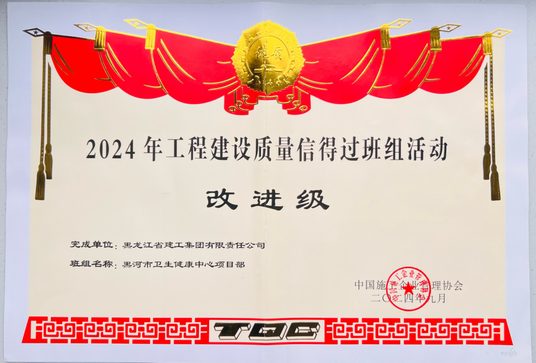 • 黑河市衛生健康中心項目部2024年工程建設質量信得過班組活動改進級